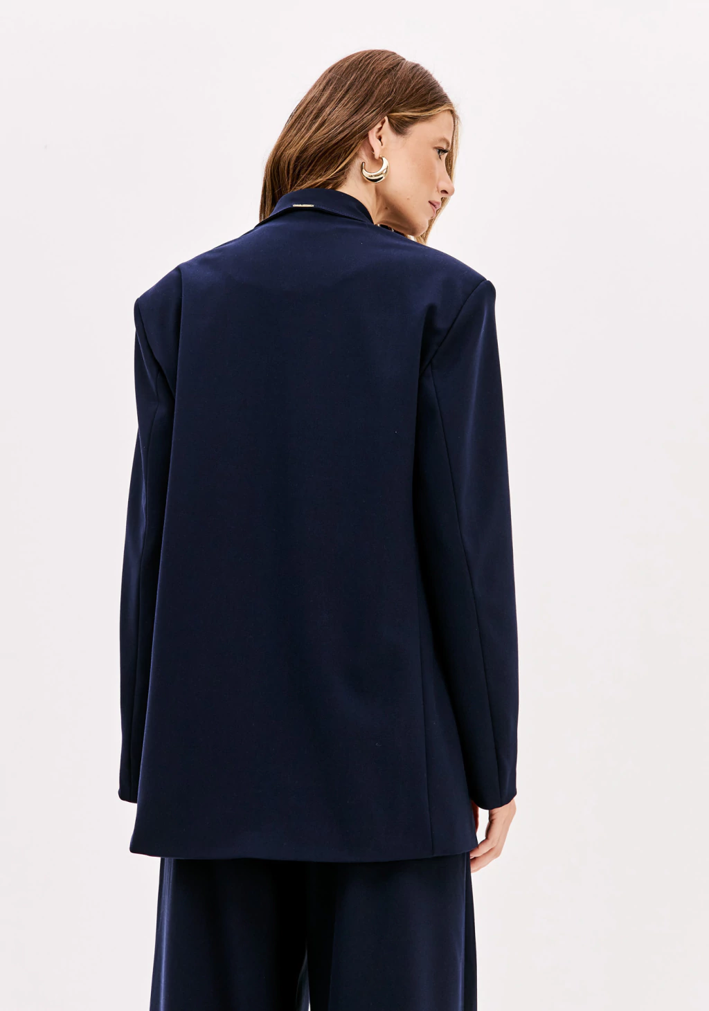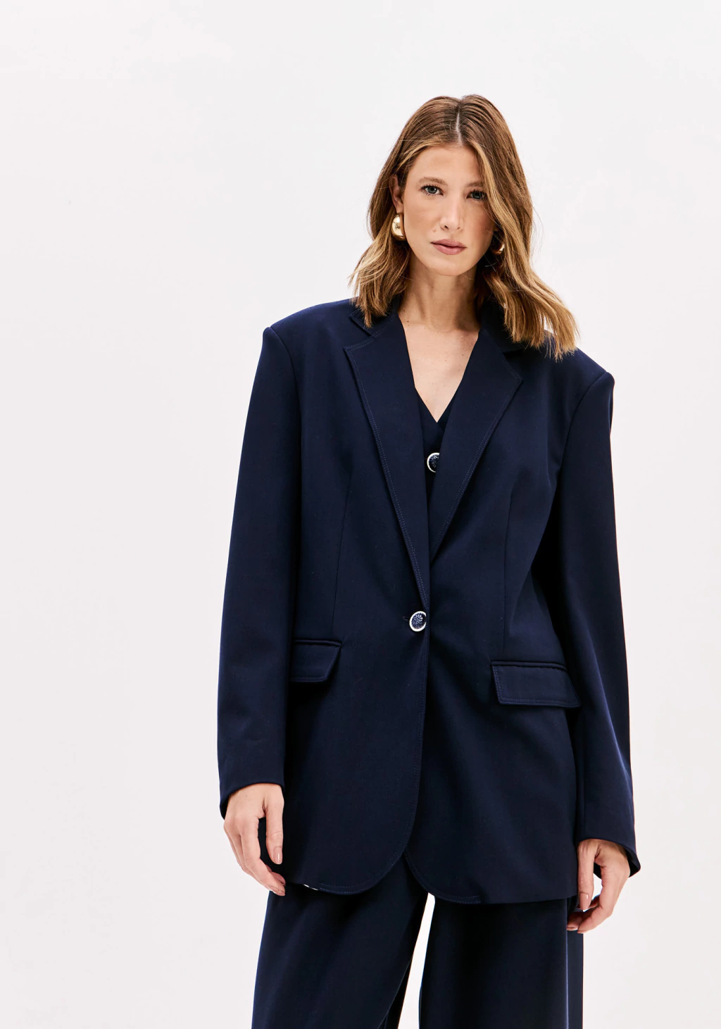 Confeccionado em tecido encorpado de alfaiataria, o blazer alongado forrado apresenta modelagem oversized e caimento solto, garantindo um visual moderno e elegante. Possui mangas longas, lapelas decorativas e fechamento frontal por botão. Uma peça statement que eleva instantaneamente qualquer produção, perfeita para atualizar seu closet com sofisticação.