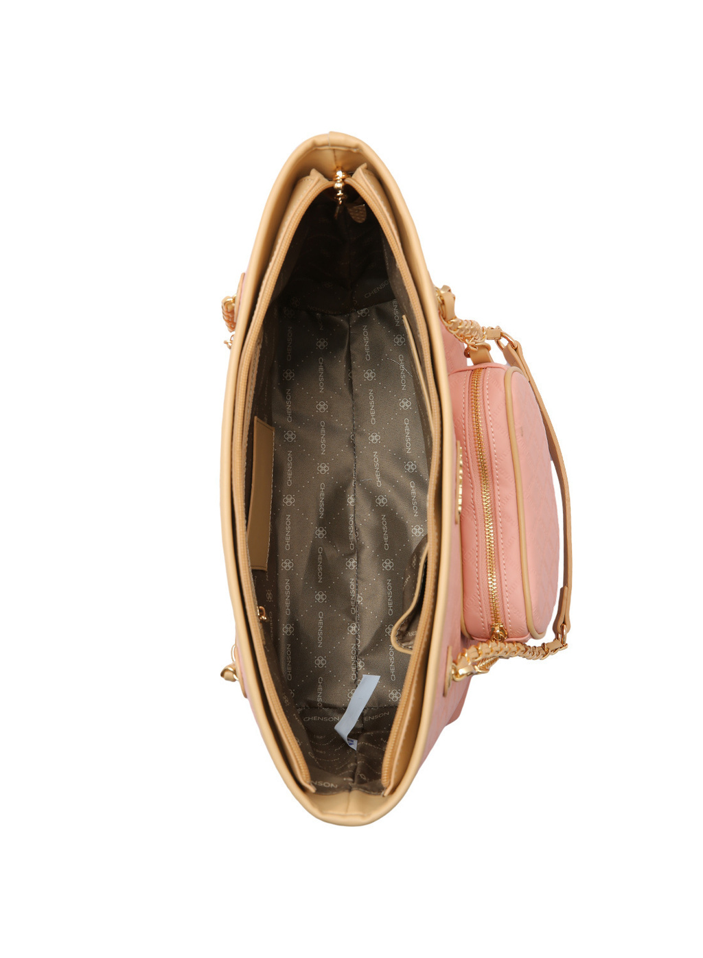 Confeccionada em PU material de excelente qualidade, essa linda bolsa possui 2 divisões compartimento para pequenos objetos. Forro em tecido personalizado com logo Chenson. Fechamento principal com zíper personalizado. Alça em PU, com ótimo acabamento em costura contrastante, adicionando um toque de sofisticação, com seus detalhes das ferragens em dourado.