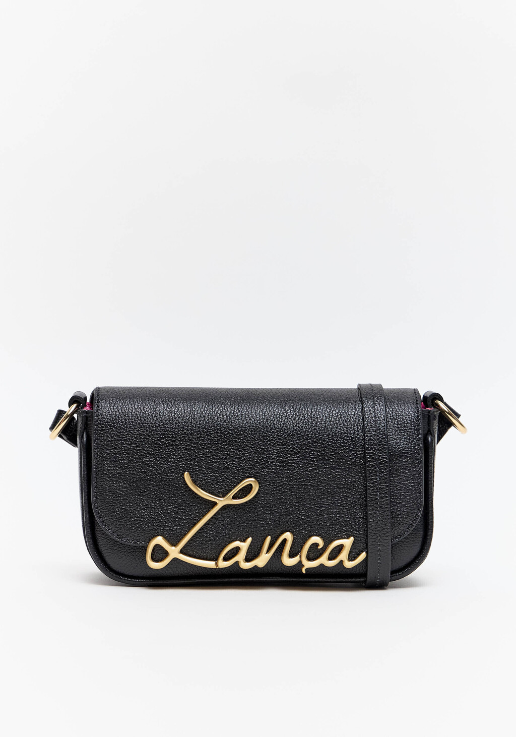 Detalhe frontal exclusivo em metal dourado com a assinatura "Lança", sofisticada e marcante.