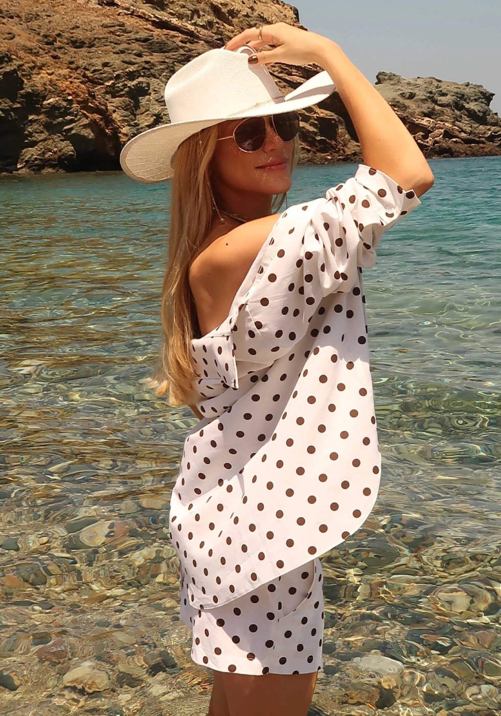 Estampa: Poá marrom sobre fundo branco - clássico repaginado.