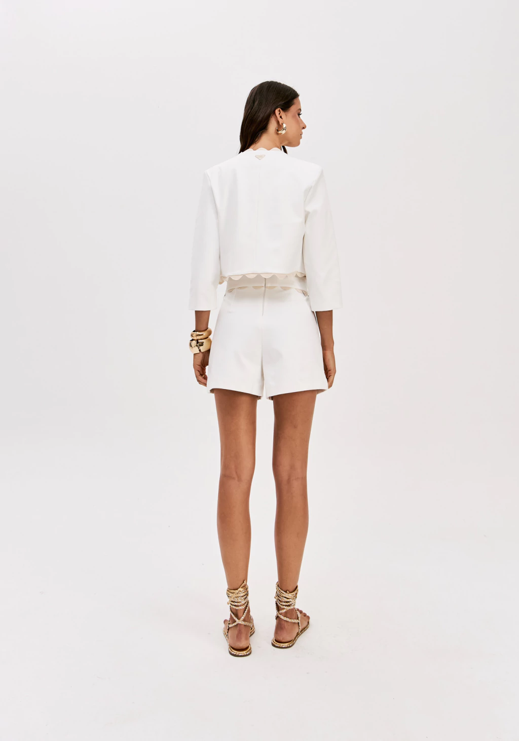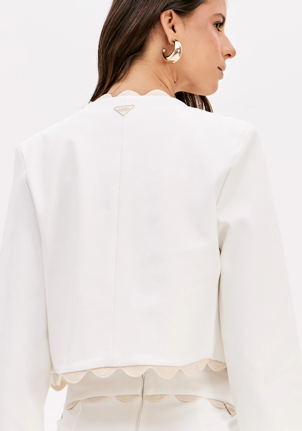 Migas elegante e moderno, o casaco curto confeccionado em malha encorpada traz sofisticação ao look. Com mangas médias, decote redondo, lapelas decorativas e caimento solto, a peça combina conforto com estilo refinado. Os acabamentos diferenciados elevam a proposta fashion, tornando-o ideal para composições versáteis e cheias de personalidade.