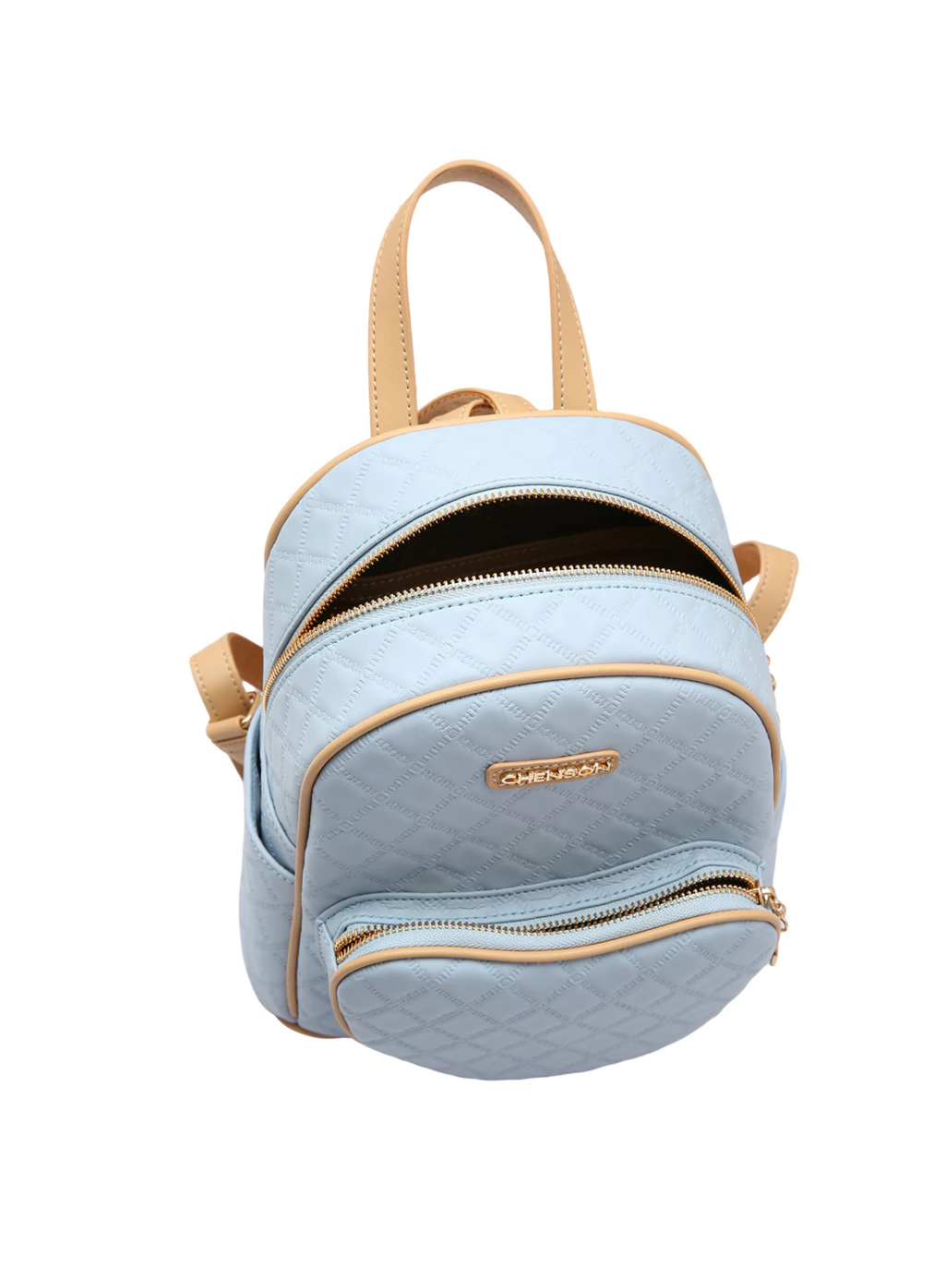 Confeccionada em PU, material de excelente qualidade, essa linda mochila possui amplo espaço com compartimento para pequenos objetos. O forro em tecido personalizado com logo Chenson proporciona elegância. O fechamento principal é feito com zíper personalizado, e as alças em PU no modelo costas garantem conforto e praticidade. O acabamento com costura contrastante e o chaveiro porta-níquel adicionam um toque de sofisticação, com detalhes das ferragens em dourado.