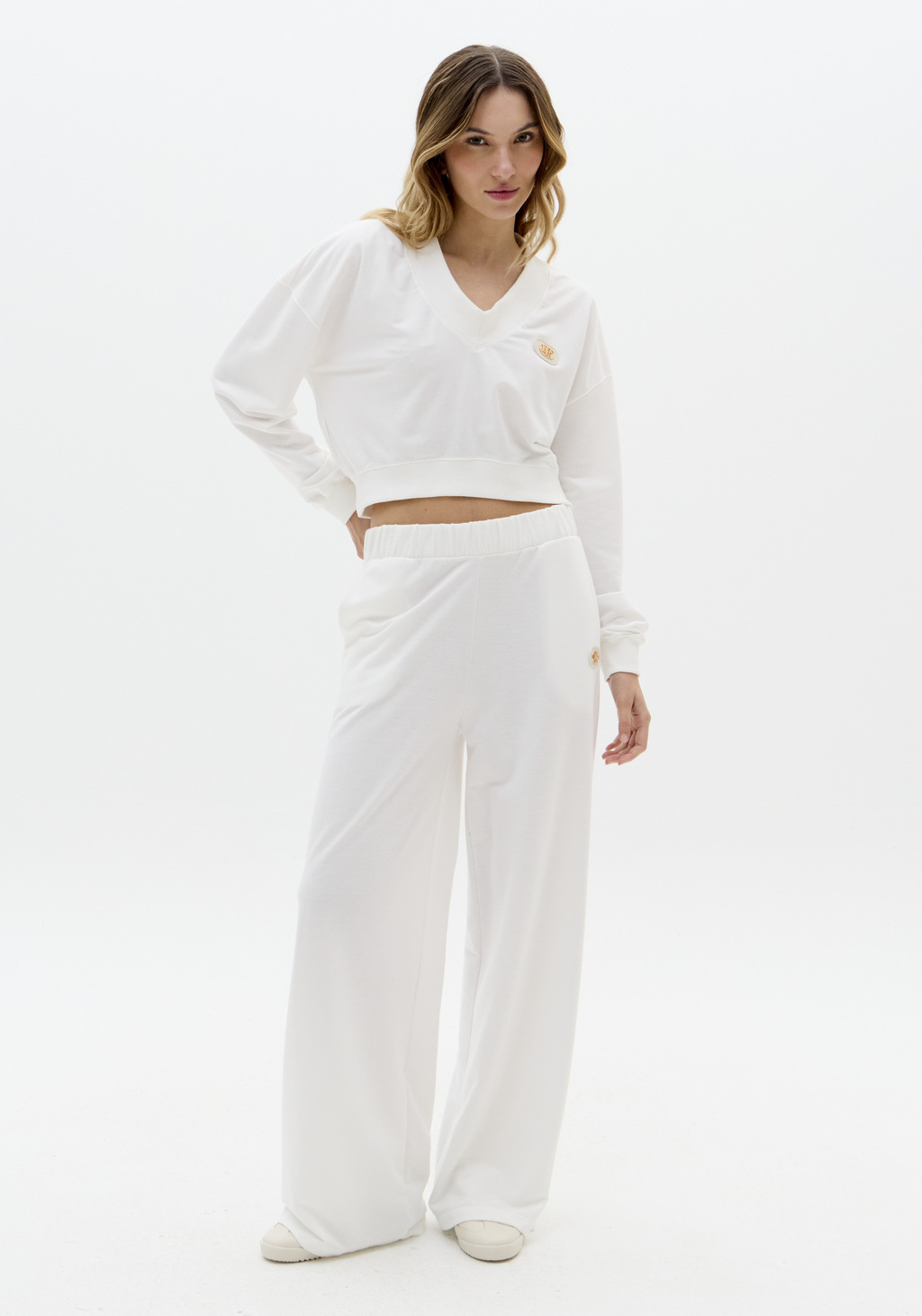 A Blusa de Moletom Easy une estilo minimalista e conforto em uma peça versátil. Com modelagem reta e caimento levemente solto, possui decote em V profundo com acabamento canelado.