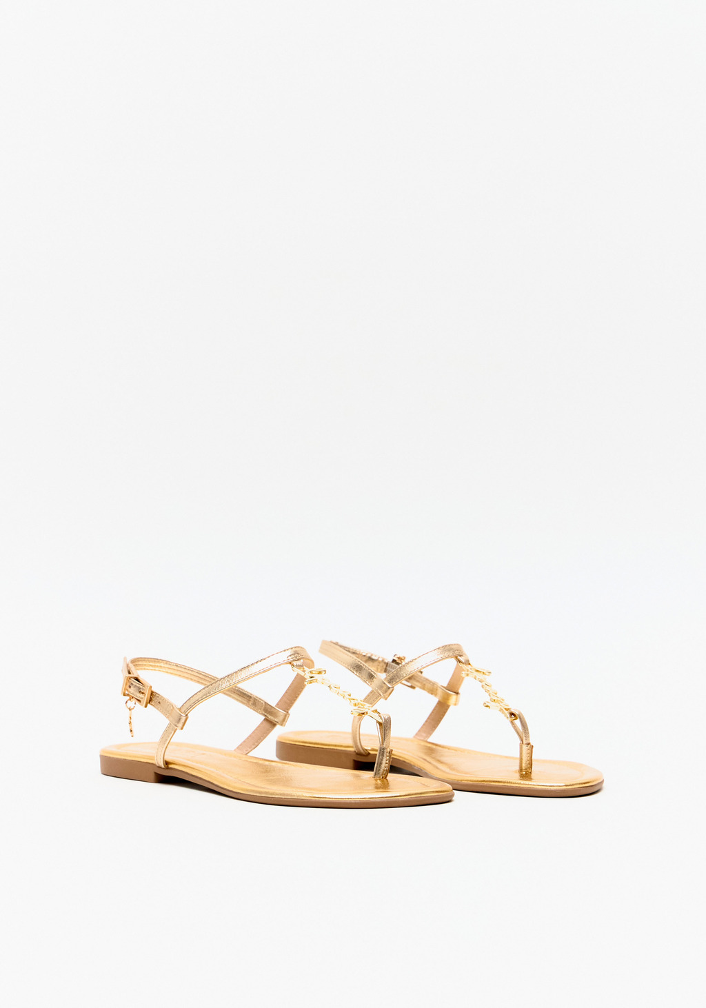 Fechamento: Fivela lateral ajustável com pingente de sol em metal, charme extra que deixa o modelo ainda mais único.