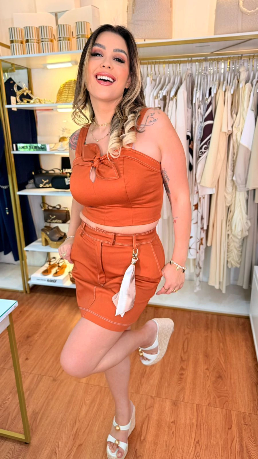 Confeccionada em tecido plano pesado e encorpado, esta saia curta apresenta cintura alta e modelagem evasê, garantindo leve amplitude e valorizando a silhueta. O modelo conta com bolsos funcionais, fechamento frontal e passantes no cós, unindo praticidade e estilo. Uma peça-chave para compor looks casuais modernos e versáteis.