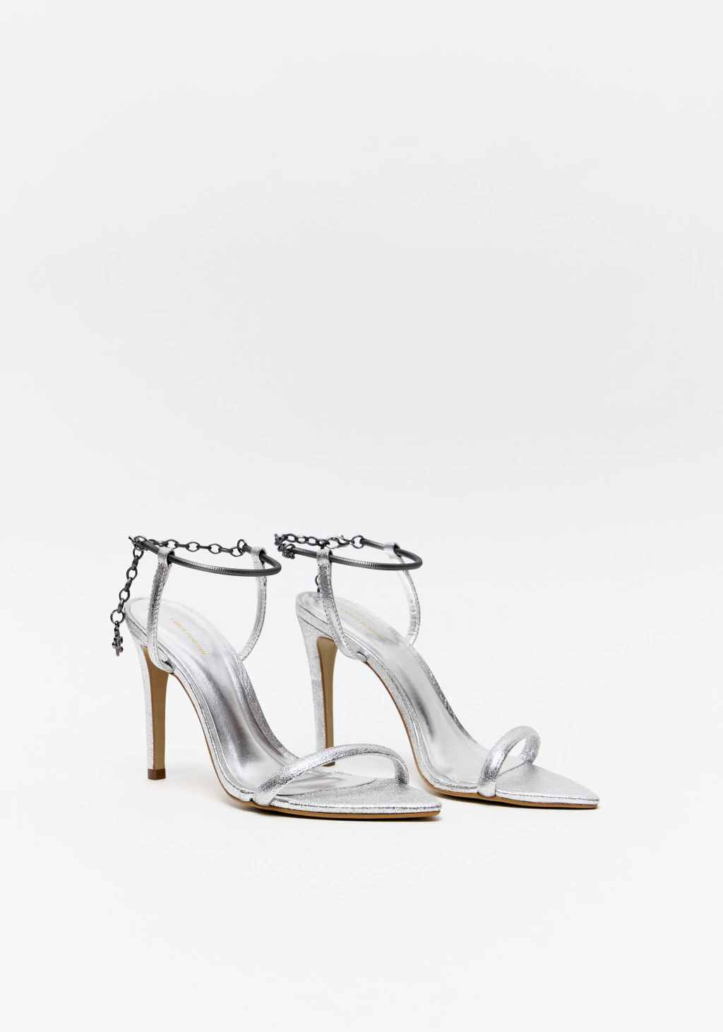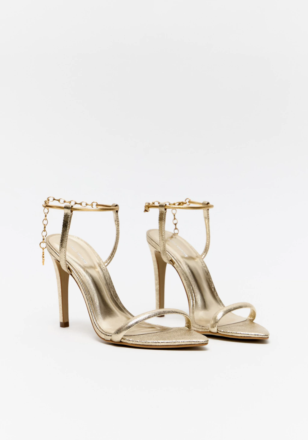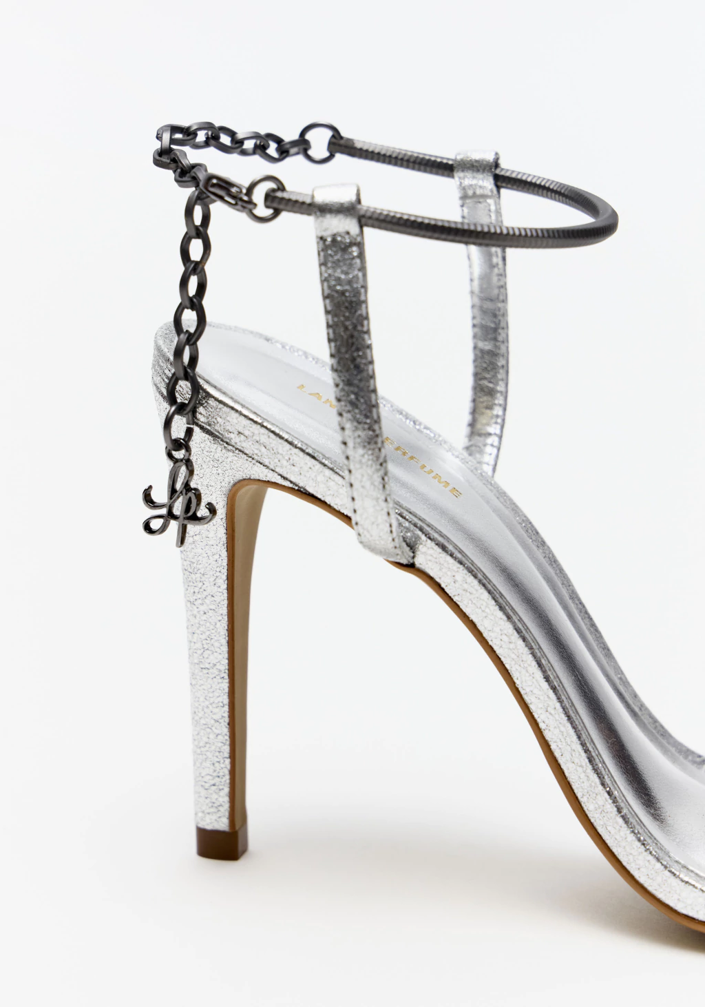 Elegante e sofisticada, a sandália de salto fino Lança Perfume é a escolha ideal para produções noturnas e ocasiões especiais. Confeccionada em material sintético de acabamento metalizado, apresenta O modelo possui design minimalista com tira única na parte frontal e fechamento no tornozelo com corrente delicada, que traz um toque moderno e glamouroso. O pingente metálico LP adiciona exclusividade e identidade à peça.