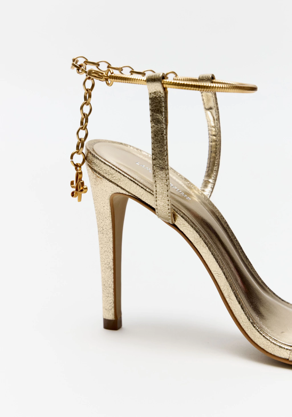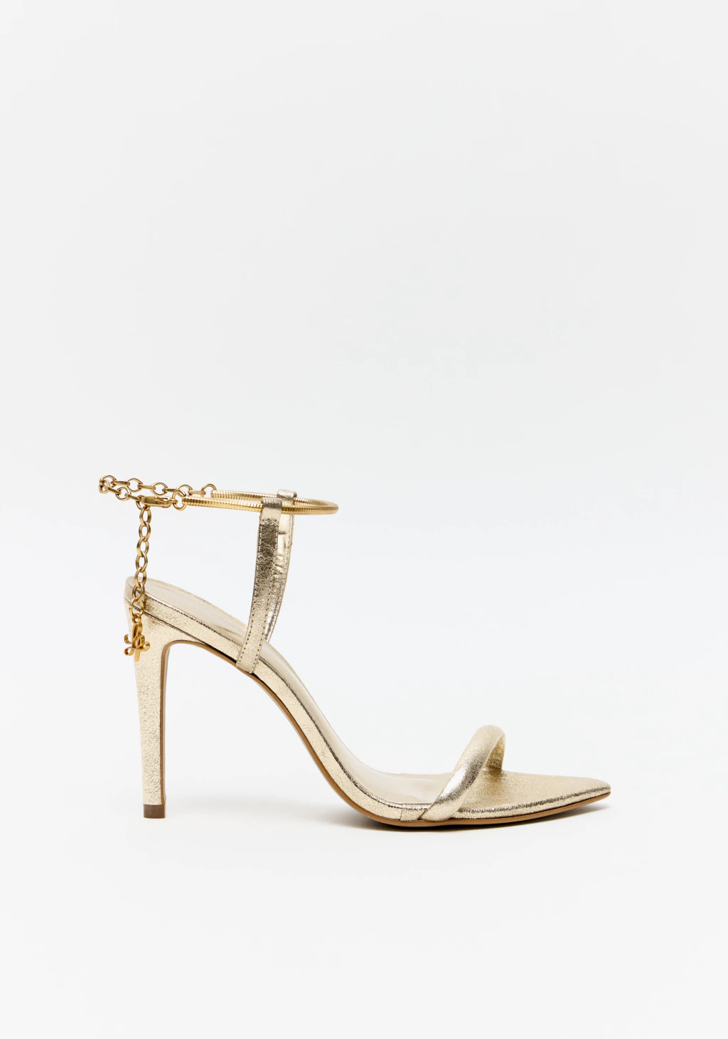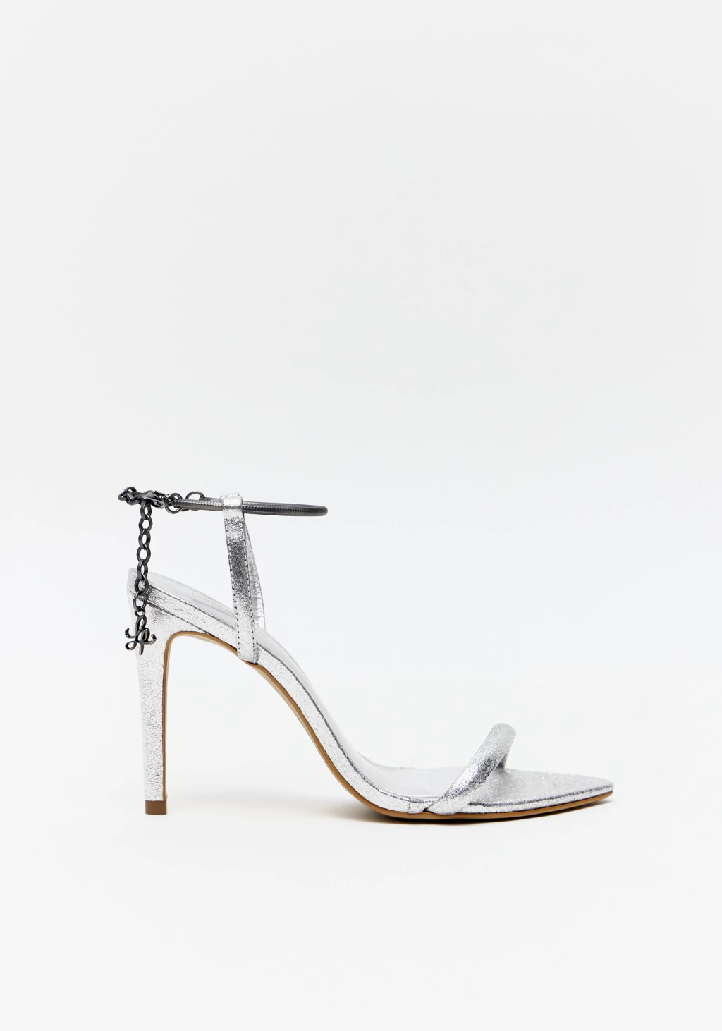 Elegante e sofisticada, a sandália de salto fino Lança Perfume é a escolha ideal para produções noturnas e ocasiões especiais. Confeccionada em material sintético de acabamento metalizado, apresenta O modelo possui design minimalista com tira única na parte frontal e fechamento no tornozelo com corrente delicada, que traz um toque moderno e glamouroso. O pingente metálico LP adiciona exclusividade e identidade à peça.