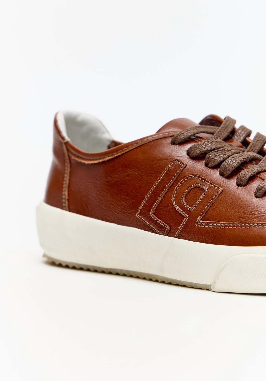 Tênis Lança Perfume em couro legítimo, na cor marrom, com design sofisticado e atemporal.
