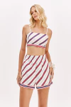 O top cropped de alça fina valoriza a silhueta e garante praticidade com fechamento em zíper lateral. Confeccionado em malha pesada, apresenta estampa new navy com correntes e listras, traduzindo a inspiração náutica da coleção. Uma escolha versátil e moderna para compor looks urbanos e cheios de estilo.