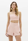 Confeccionada em tecido plano encorpado, a blusa de comprimento cropped apresenta caimento justo que valoriza as formas. Possui alças finas ajustáveis, decote reto elegante e fechamento posterior por zíper. Uma peça versátil e moderna para elevar qualquer produção!