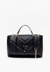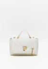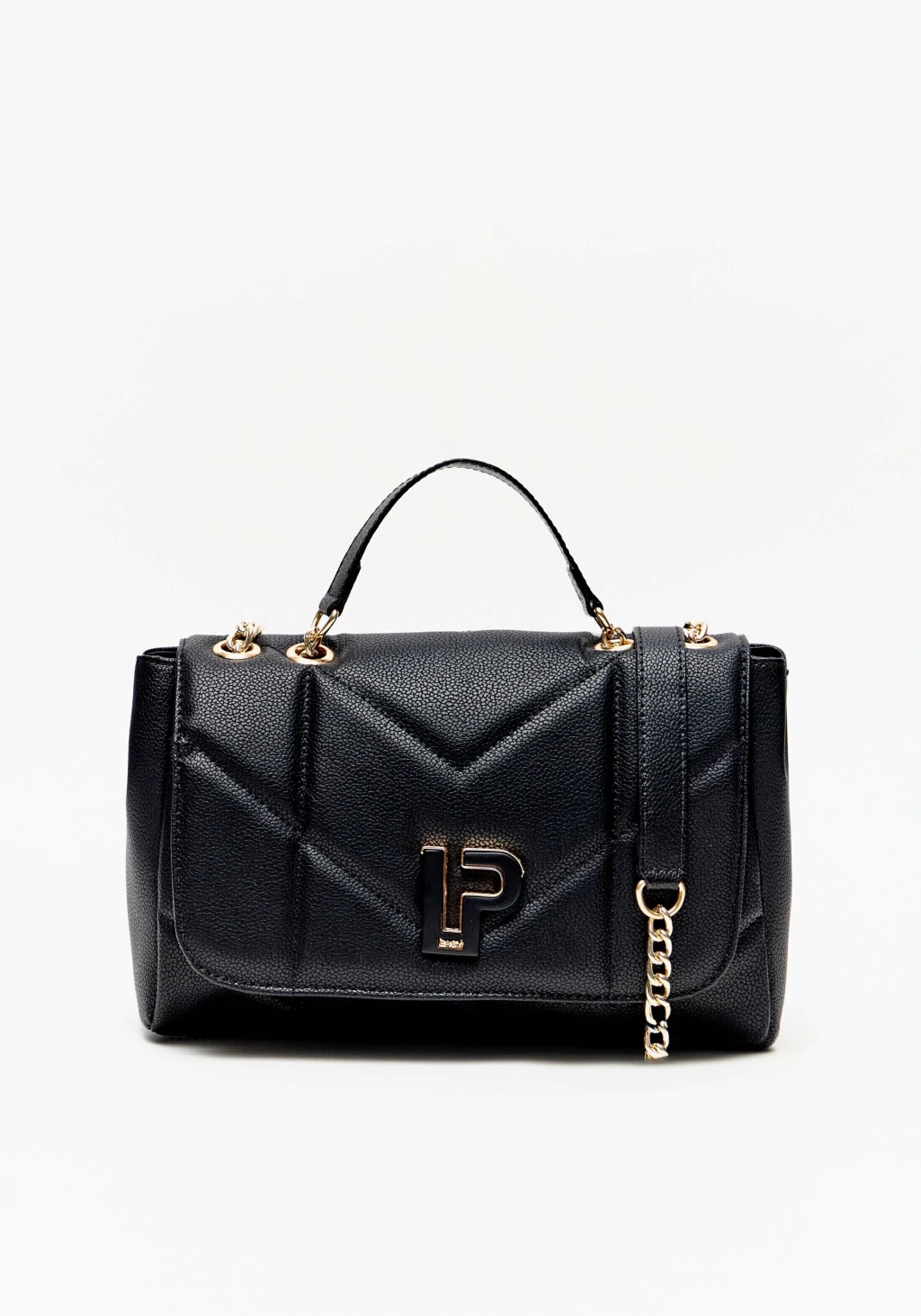 Confeccionada em material sintético de alta qualidade, a peça apresenta acabamento matelassê em padrão geométrico, proporcionando textura e refinamento ao visual. O logo metálico LP em destaque na parte frontal confere um toque de exclusividade, enquanto os detalhes em metal dourado elevam o design com um ar de luxo.