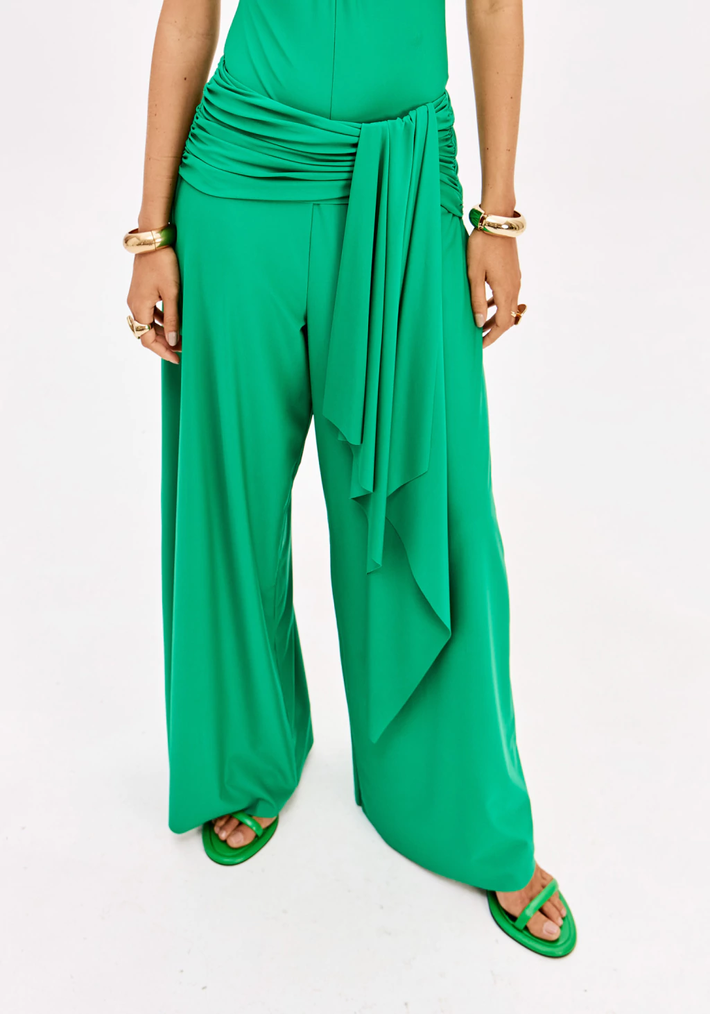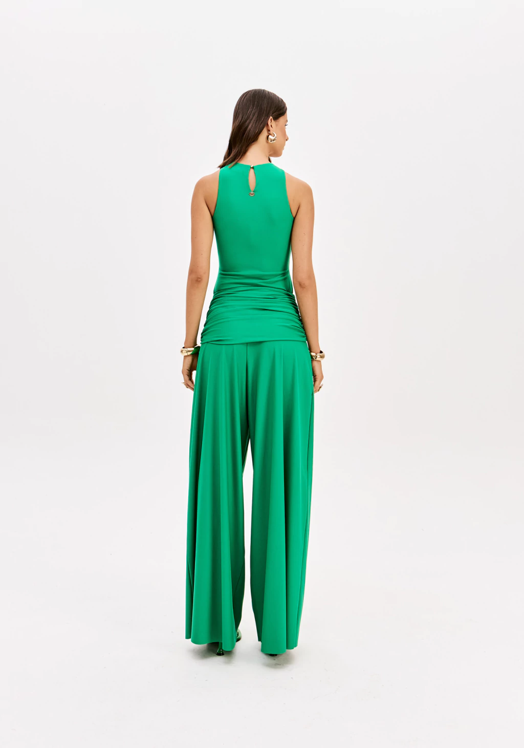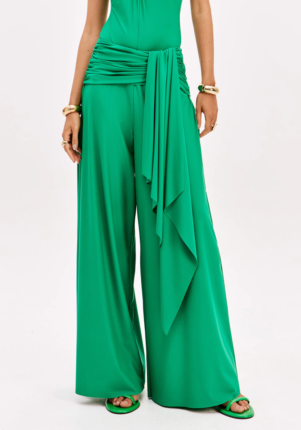 Confeccionada em malha leve, a calça pantalona une conforto e sofisticação. O modelo apresenta cintura alta, caimento fluido e barras cortadas a fio, garantindo movimento e leveza. O detalhe de franzidos no quadril aliado à faixa sobreposta adiciona charme e modernidade, tornando a peça perfeita para combinações elegantes. Use com body LP e crie composições únicas e cheias de estilo.